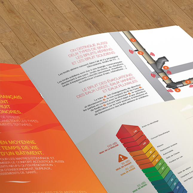 Création d’une plaquette présentant la gamme Friaphon : Système complet pour atteindre le confort acoustique.